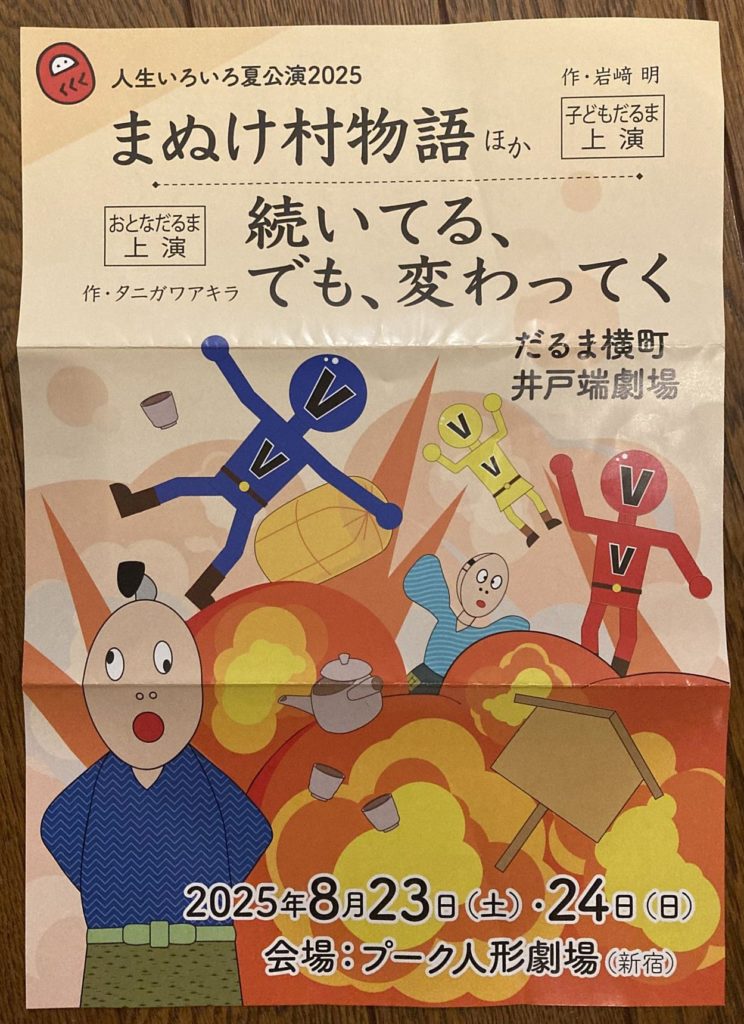 『だるま横町井戸端劇場』と言う劇団なのかな?演劇を楽しむ集団で、子供達の公演と大人達の公演があって、合間に座長と言うか、町内会長さんご家族によるアットホームな出し物があると言う、楽しい劇でした。