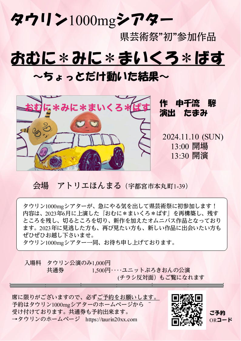 タウリン1000mgシアター「おむに*みに*まいくろ*ばす」2024年11月10日(日)13:00開場 13:30開演
